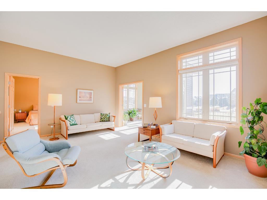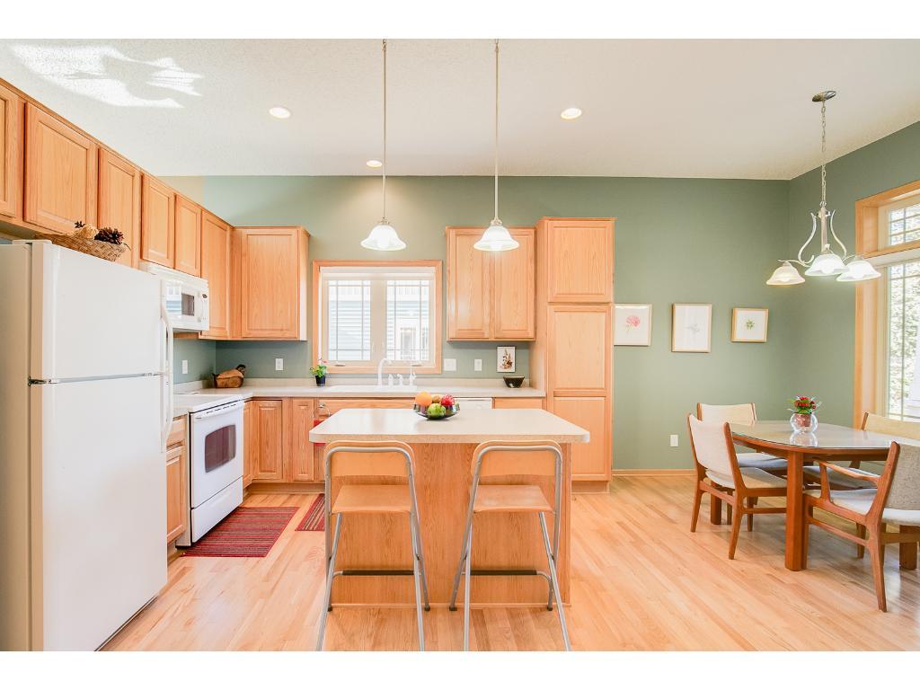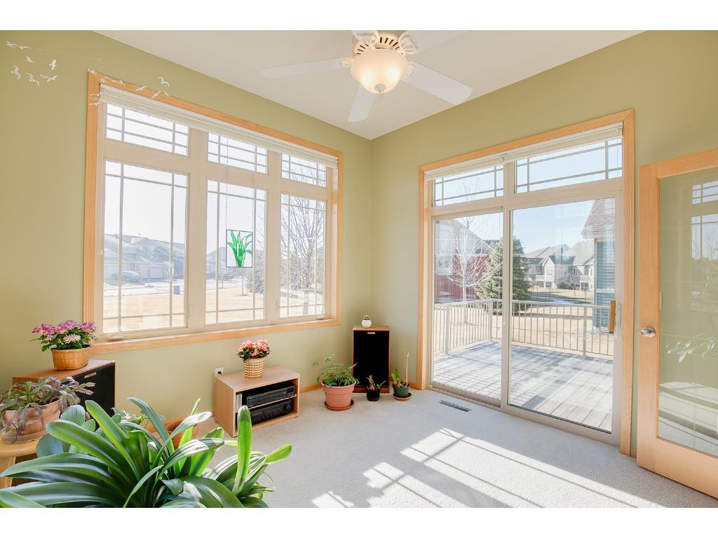 Sun filled and spacious end unit twin home in impeccable condition. Grand spaces, open flr plan, quality built; SW exposure! Super kitchen loaded w/cabinets and counter space/center island, great for entertaining. Eat-in kitchen/breakfast area plus formal dining. Gas frpl in LR which offers lots of room for multi-seating. French doors to sunroom which connects to your private deck. Owners suite w/lrg walk-in closet and full ceramic BA, w/whirlpool tub/dbl sinks/separate shower! So much to offer!